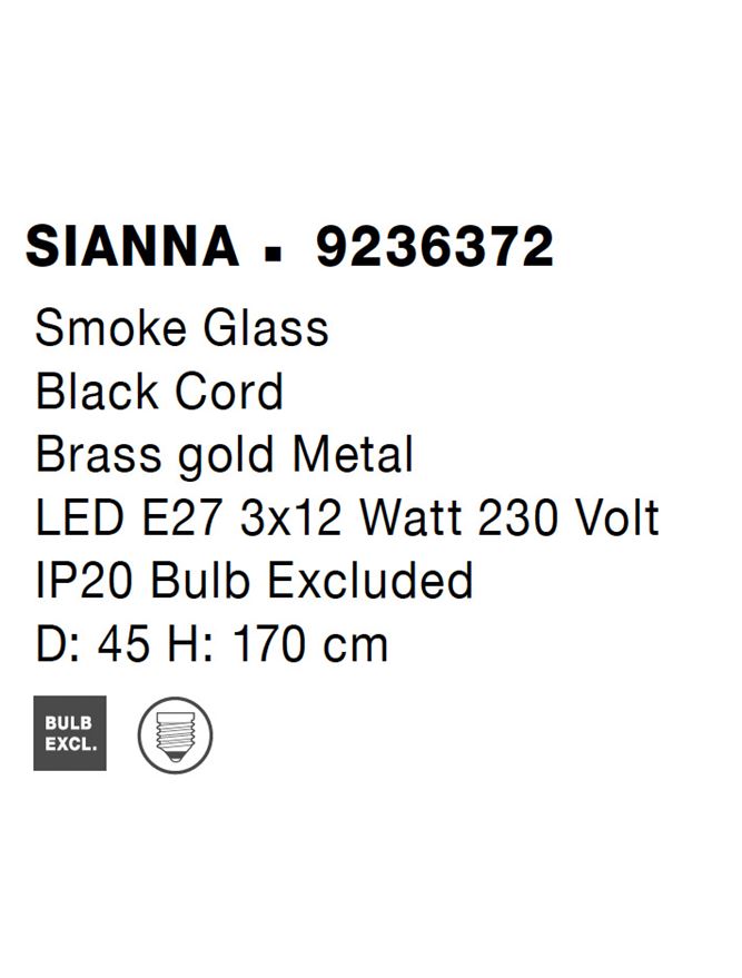 Срок на доставка: ПО ЗАПИТВАНЕ Продуктова информация Материал: Smoke Glass & Black Cord & Brass gold Metal Тип крушка: LED E27 3×12 Watt 230 Volt IP20 Bulb Excluded Код: 9236372 Тип продукт: MODERN PENDANT LUMINAIRES Размери: D: 45 H: 170 cm