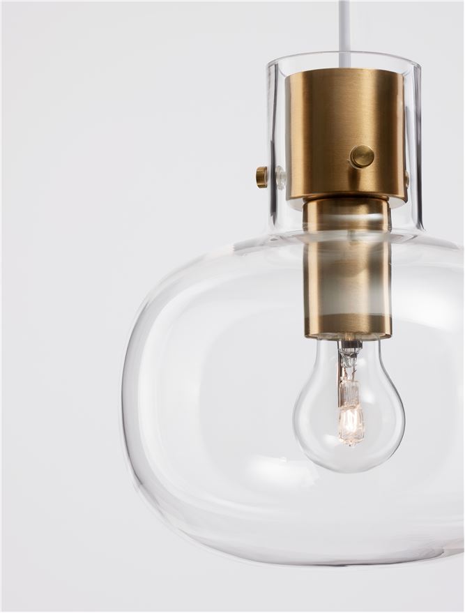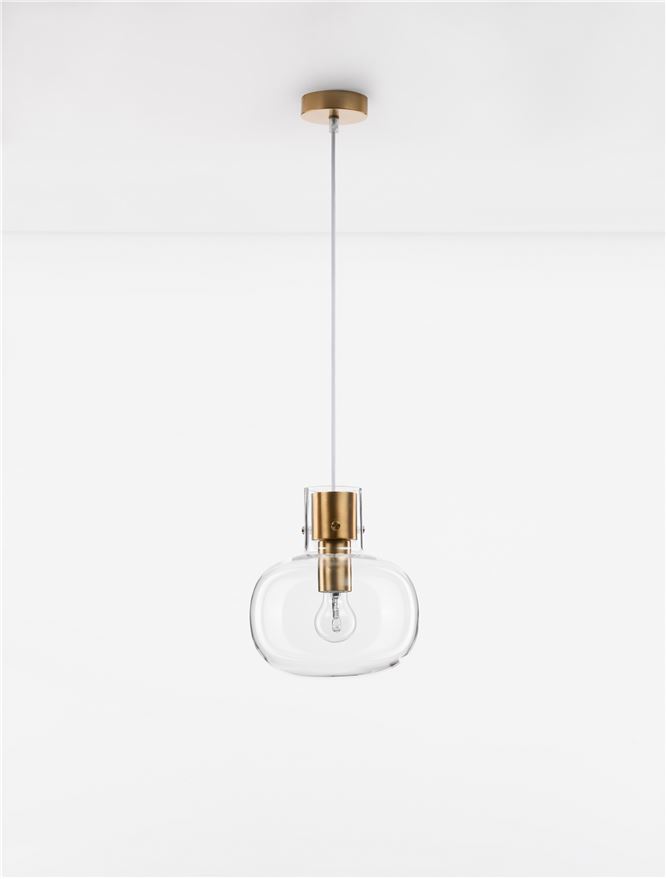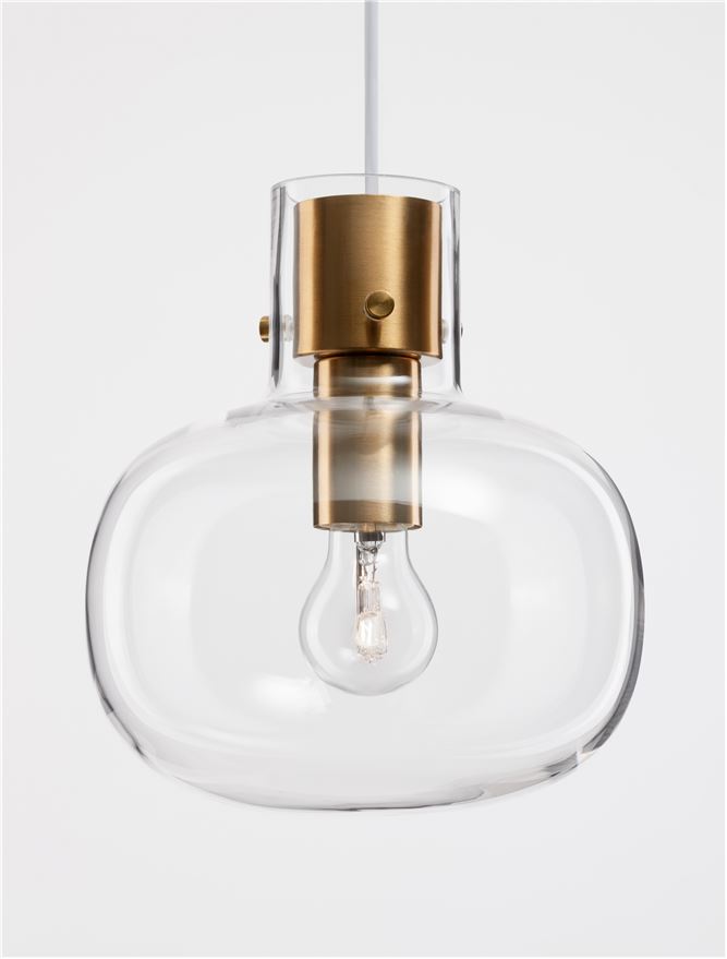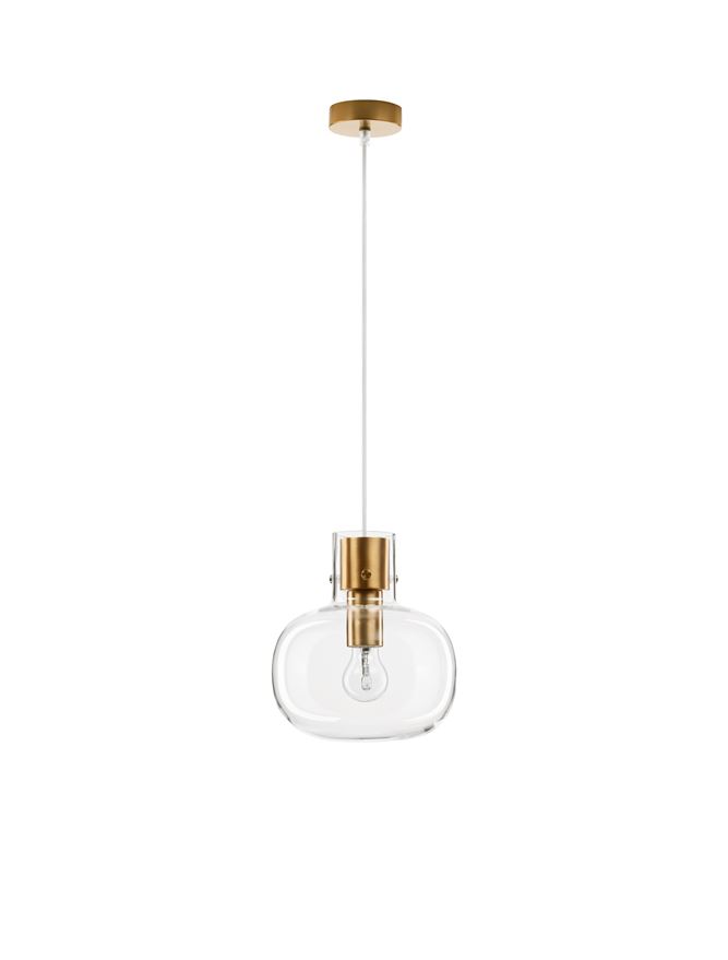 Clear Glass White Cord Brass Gold Metal LED E27 1×12 Watt 230 Volt IP20 Bulb Excluded D: 22 H 1: 25 H 2: 228 cm
