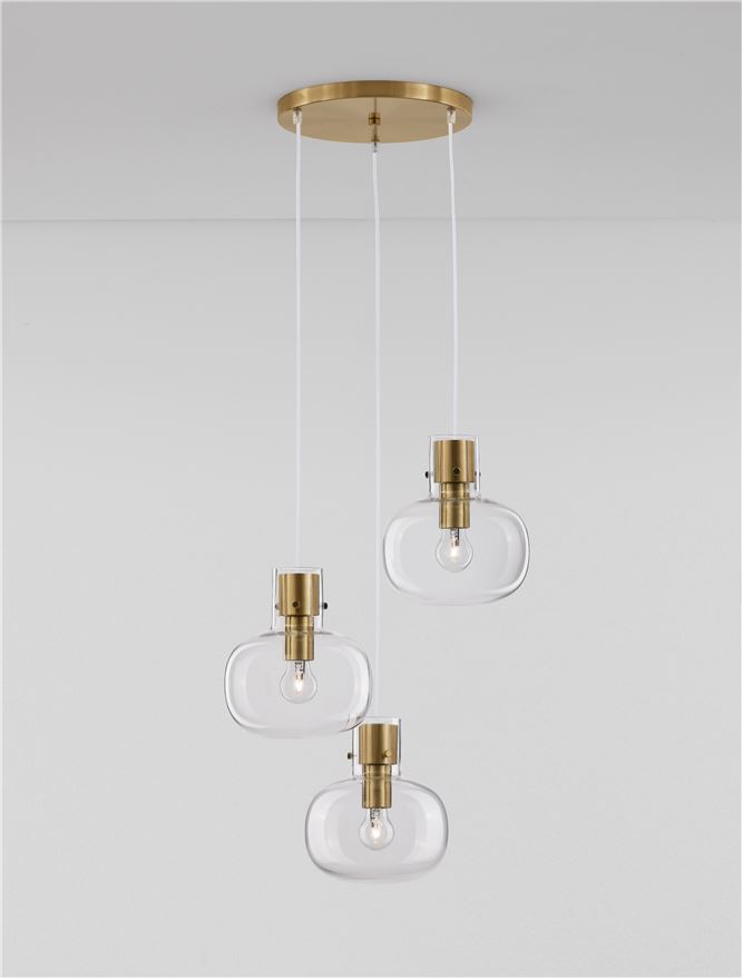 Clear Glass White Cord Brass Gold Metal LED E27 3×12 Watt 230 Volt IP20 Bulb Excluded D: 30 H: 178 cm
