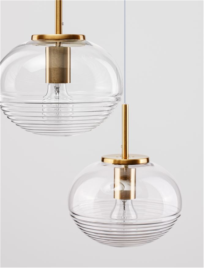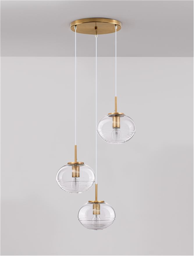 Clear Glass White Cord Brass Gold Metal LED E27 3×12 Watt 230 Volt IP20 Bulb Excluded D:30 H:180 cm