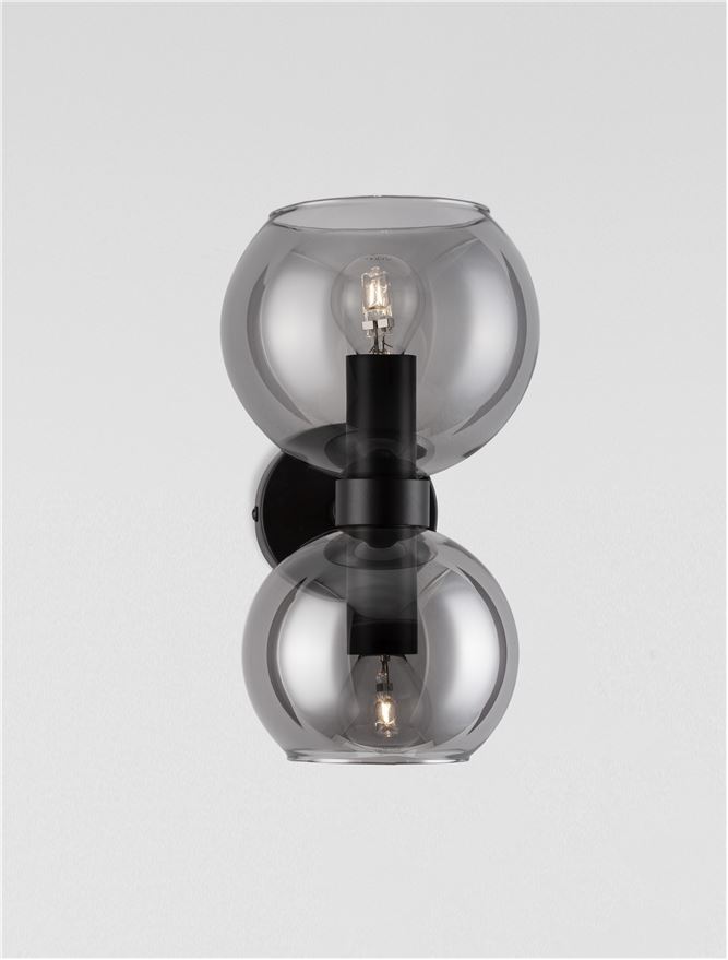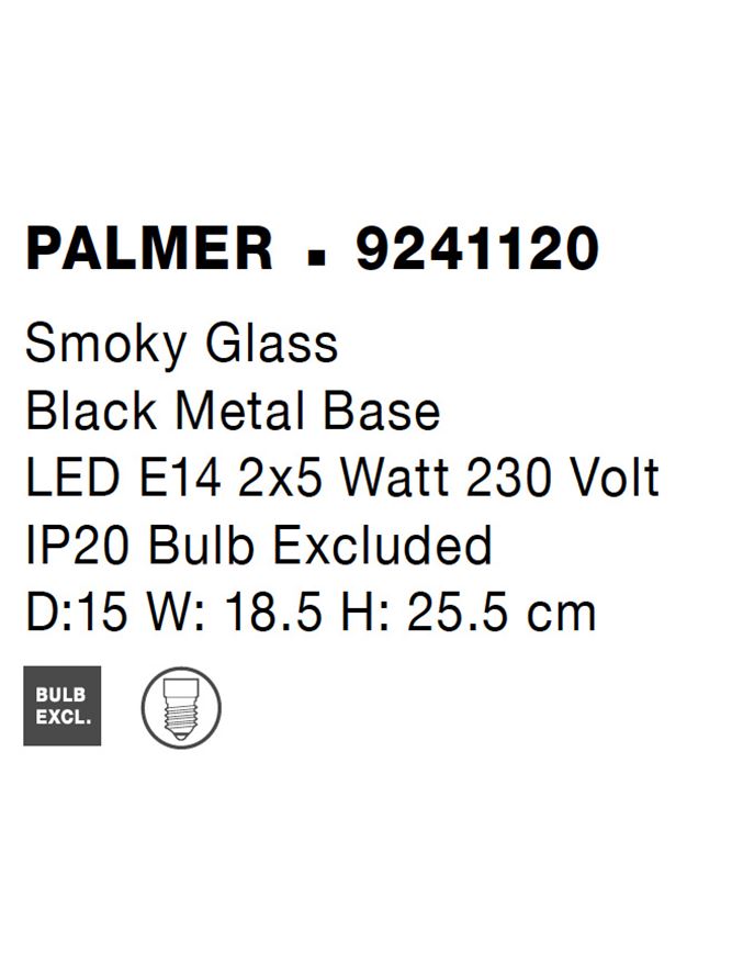 Срок на доставка: ПО ЗАПИТВАНЕ Продуктова информация Материал: Smoky Glass & Black Metal Base Тип крушка: LED E14 2×5 Watt 230 Volt IP20 Bulb Excluded Код: 9241120 Тип продукт: WALL LUMINAIRES Размери: D:13 H1:11 H2:13 H3: 25.5 cm