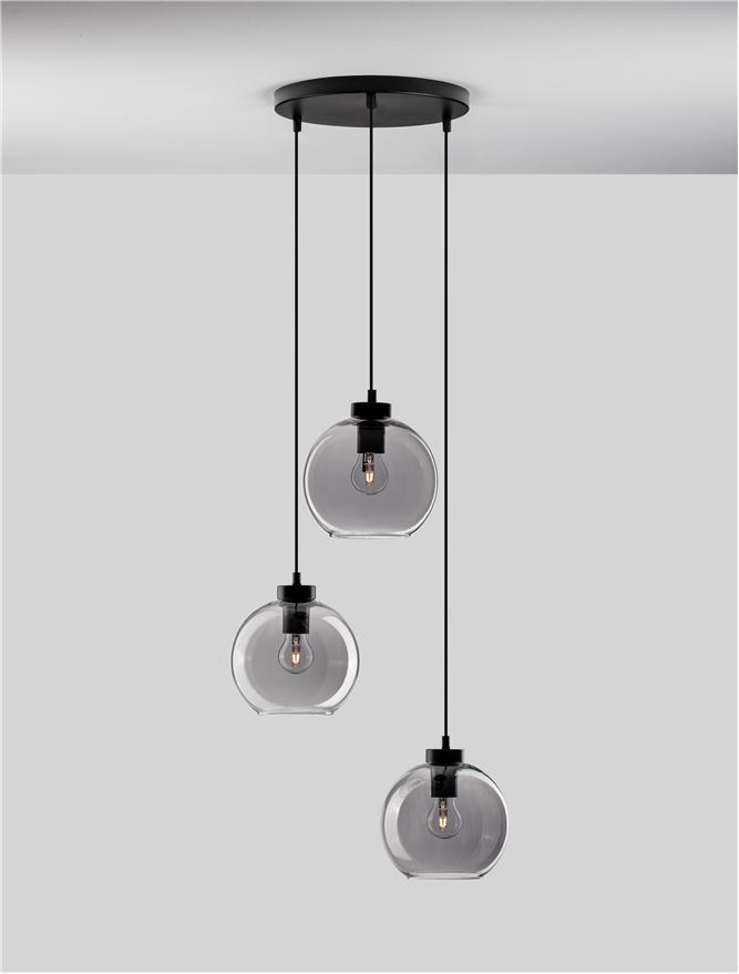 Smoky Glass Black Cord Black Metal Base LED E27 3×12 Watt 230 Volt IP20 Bulb Excluded D: 30 H: 145 cm
