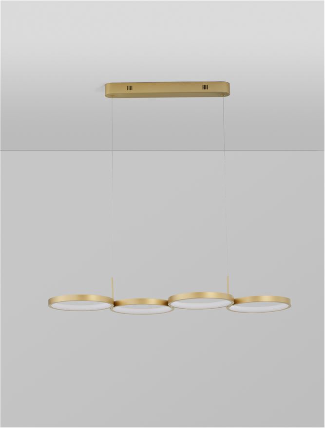 Срок на доставка: ПО ЗАПИТВАНЕ Продуктова информация Материал: Brass Gold Aluminiun & Silicon Тип крушка: LED 41 Watt 230V 2300Lm 3000K IP20 Код: 9248118 Тип продукт: MODERN PENDANT LUMINAIRES Размери: L: 84 W: 32 H: 120 cm