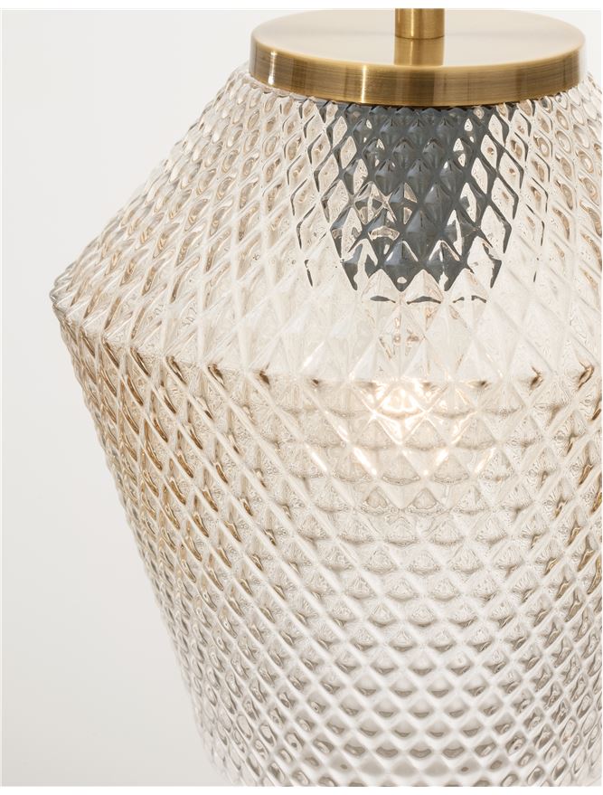 Cognac Shadow Glass Brass Gold Metal LED E27 1×12 Watt 230 Volt IP20 Bulb Excluded D: 19.7 H1: 25.5 H2: 120 cm
