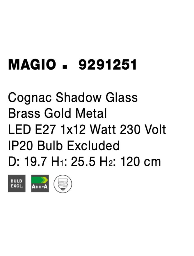 Срок на доставка: ПО ЗАПИТВАНЕ Продуктова информация Материал: Cognac Shadow Glass Brass Gold Metal Тип крушка: LED E27 1×12 Watt 230 Volt IP20 Bulb Excluded Код: 9291251 Тип продукт: VINTAGE Размери: D: 19.7 H1: 25.5 H2: 120 cm