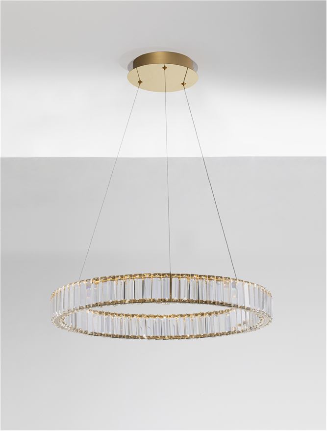Gold Metal & Crystal LED 40W 230 Volt 4647Lm 3500K IP20 Class I D: 60 H: 150 cm