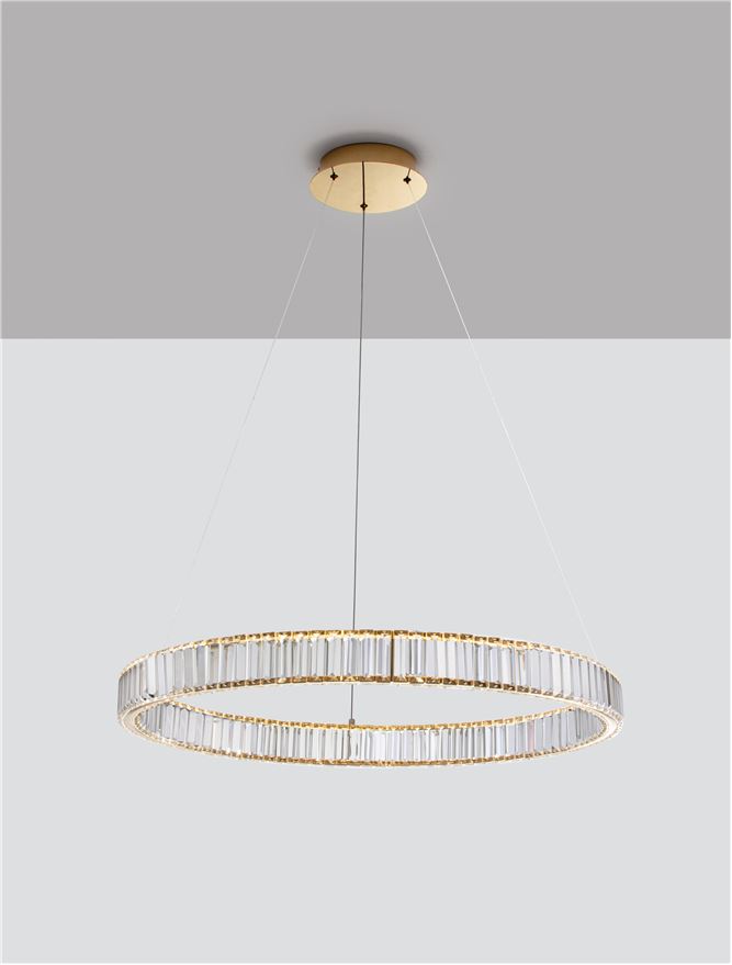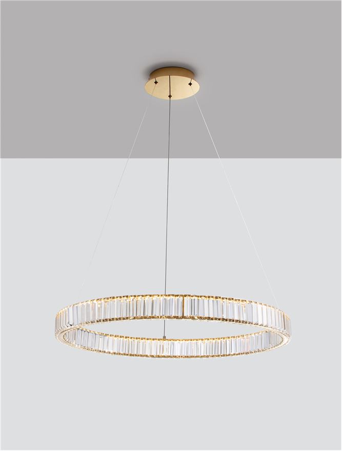 Gold Metal & Crystal LED 47W 230 Volt 4895Lm 3500K IP20 Class I D: 80 H: 150 cm