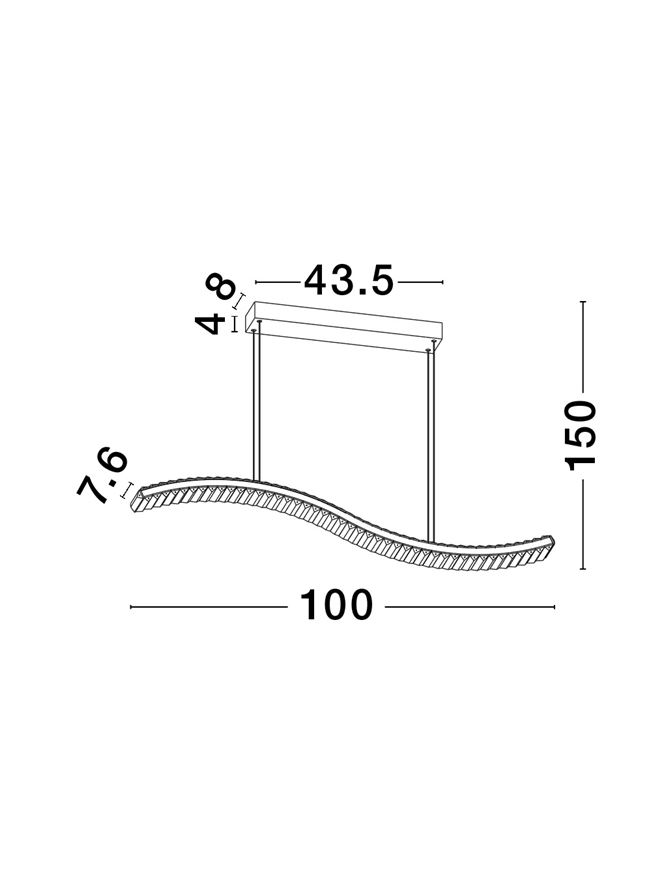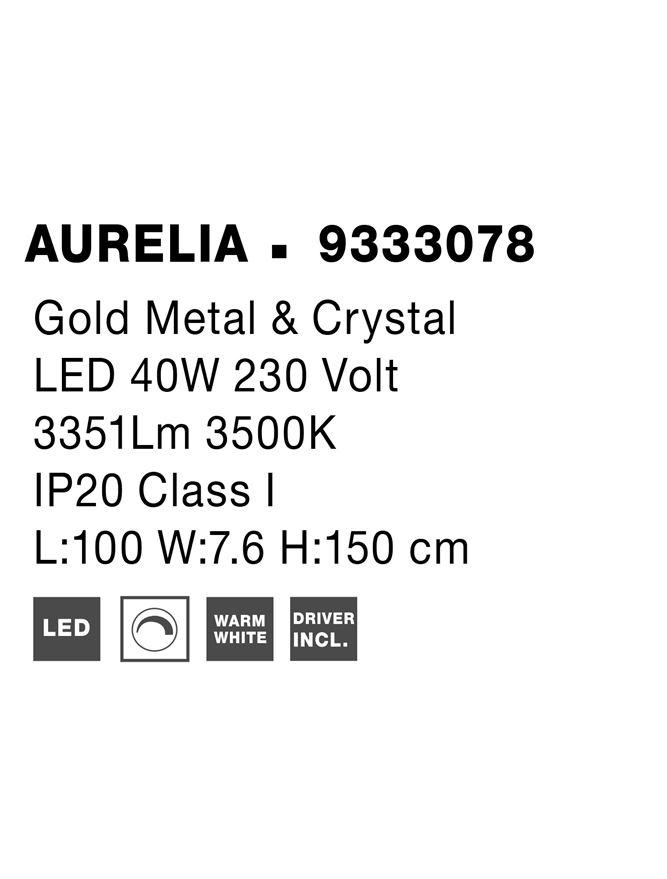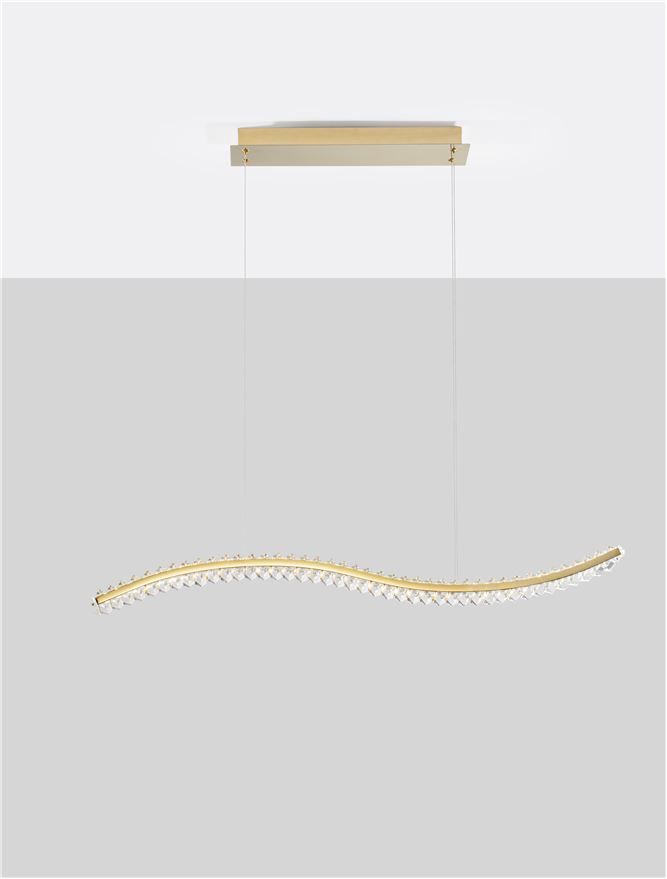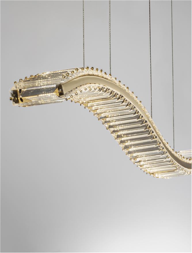 Gold Metal & Crystal LED 40W 230 Volt 3351Lm 3500K IP20 Class I L: 100 W: 7.6 H: 150 cm
