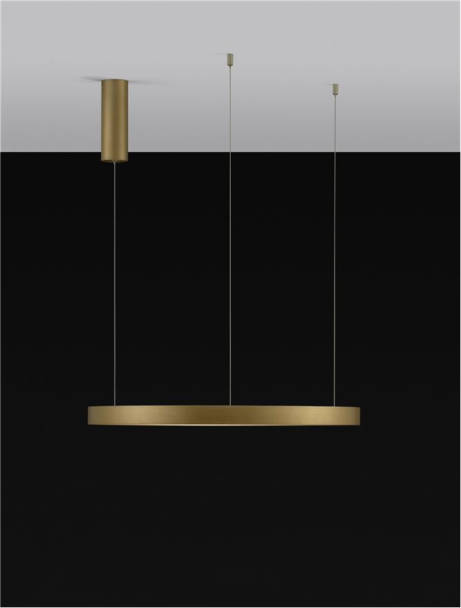 Срок на доставка: ПО ЗАПИТВАНЕ Продуктова информация Материал: Brushed Gold Aluminum & Silicone Тип крушка: LED 42 Watt 230 Volt Lm 3000K IP20 Код: 9345619 Тип продукт: MODERN PENDANT LUMINAIRES Размери: D: 60 H: 150 cm