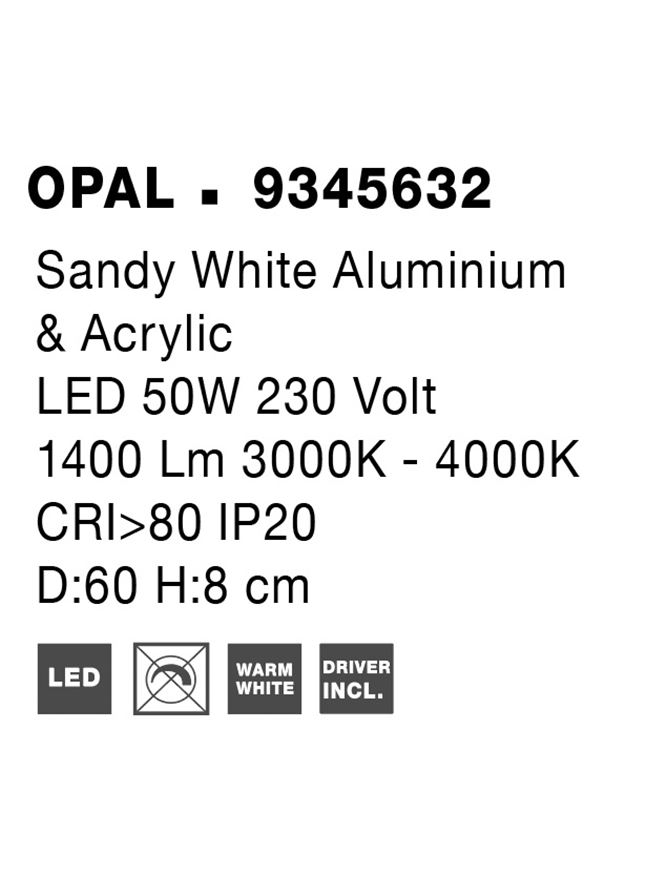 Sandy White Aluminium & Acrylic LED 50W 230 Volt 3317Lm 2700K – 4000K IP20 Included Remote Control D1: 60 D2: 46 H:8 cm