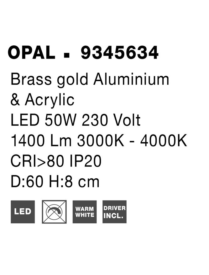 Brass gold Aluminium & Acrylic LED 50W 230 Volt 3317Lm 2700K – 4000K IP20 D1: 60 D2: 46 H:8 cm