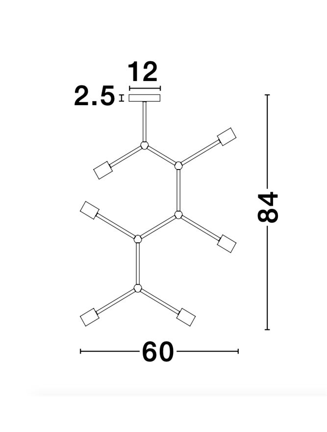 Brass Metal LED E27 6×12 Watt 230 Volt IP20 Bulb Excluded D: 60 H: 84 cm