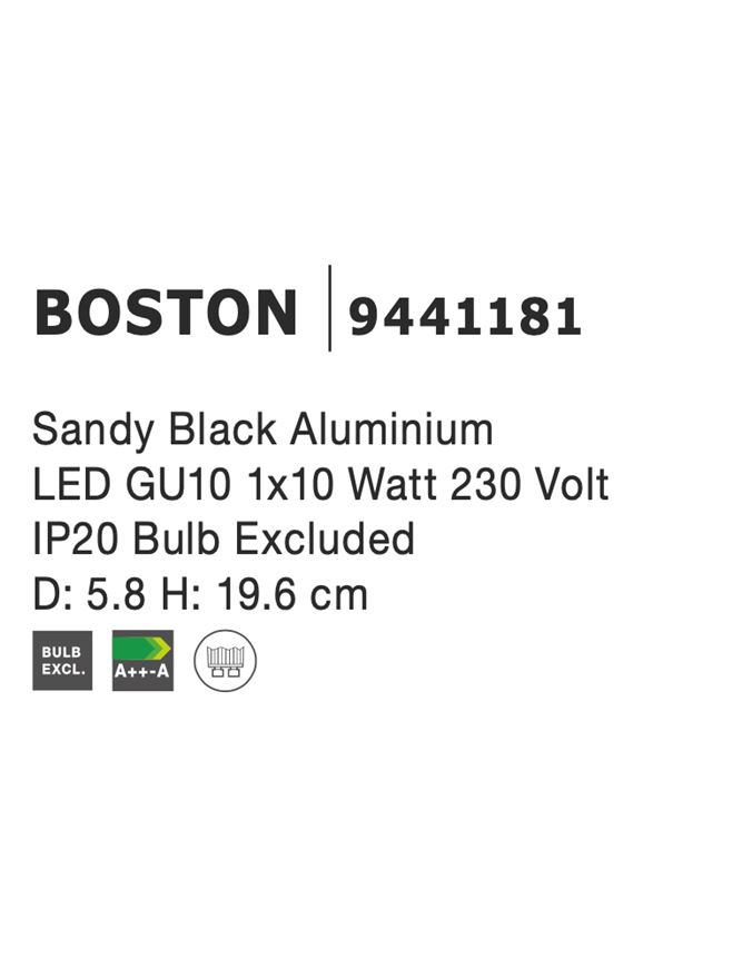 Sandy Black Aluminium LED GU10 1×10 Watt 230 Volt IP20 Bulb Excluded D: 5.8 H: 19.6 cm