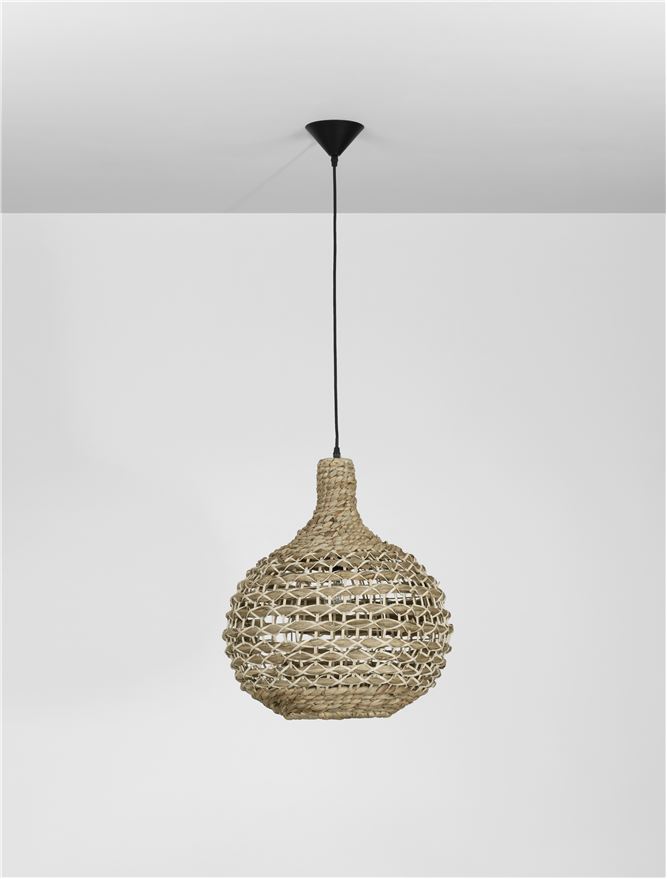 Dried Water Hyacinth Black Fabric Wire & Base LED E27 1×12 Watt 230 Volt IP20 Bulb Excluded D: 46 H1: 51.5 H2: 205 cm