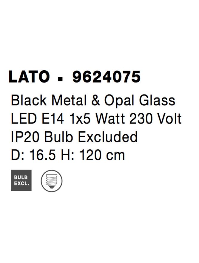 Срок на доставка: ПО ЗАПИТВАНЕ Продуктова информация Материал: Black Metal & Opal Glass Тип крушка: LED E14 1×5 Watt 230 Volt IP20 Bulb Excluded Код: 9624075 Тип продукт: MODERN PENDANT LUMINAIRES Размери: D: 16.5 H: 120 cm