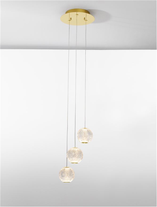 Срок на доставка: ПО ЗАПИТВАНЕ Продуктова информация Материал: Gold Aluminium & Acrylic Тип крушка: LED 15 Watt 230 Volt 961.61Lm 3200K IP20 Код: 9695208 Тип продукт: MODERN PENDANT LUMINAIRES Размери: D: 22 H: 120 cm