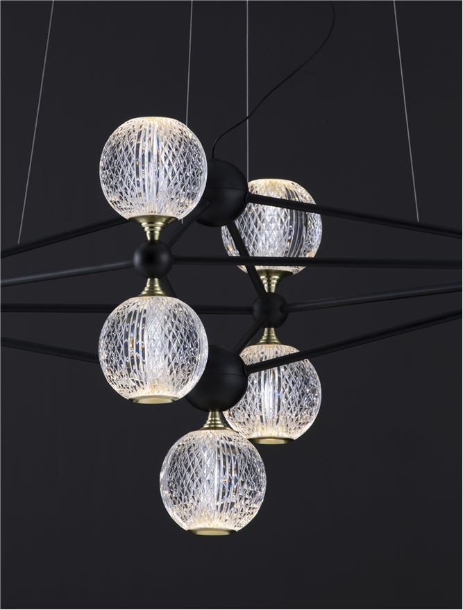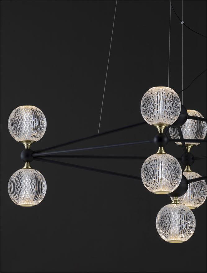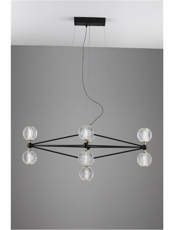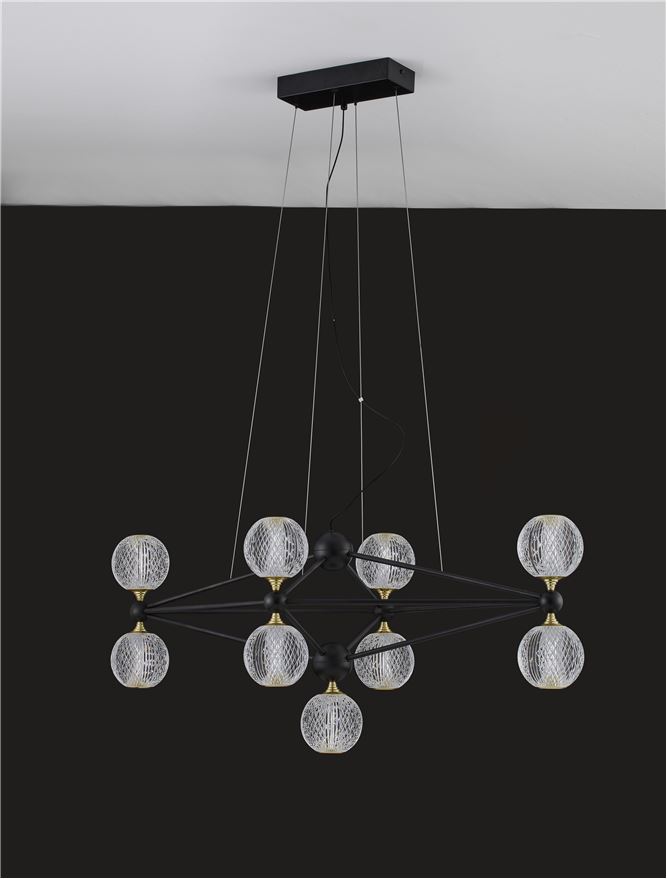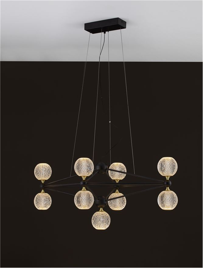 Срок на доставка: ПО ЗАПИТВАНЕ Продуктова информация Материал: Black Aluminium & Acrylic Тип крушка: LED 37.8 Watt 230V Lm 3200K IP20 Код: 9695300 Тип продукт: MODERN PENDANT LUMINAIRES Размери: D: 96 W: 46 H: 120 cm