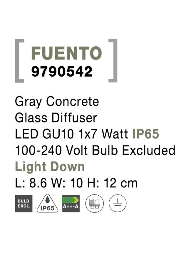 Срок на доставка: ПО ЗАПИТВАНЕ Продуктова информация Материал: Gray Concrete Glass Diffuser Тип крушка: LED GU10 1×7 Watt IP65 100-240 Volt Bulb Excluded Light Down Код: 9790542 Тип продукт: OUTDOOR – WALL Размери: L: 8.6 W: 10 H: 12 cm