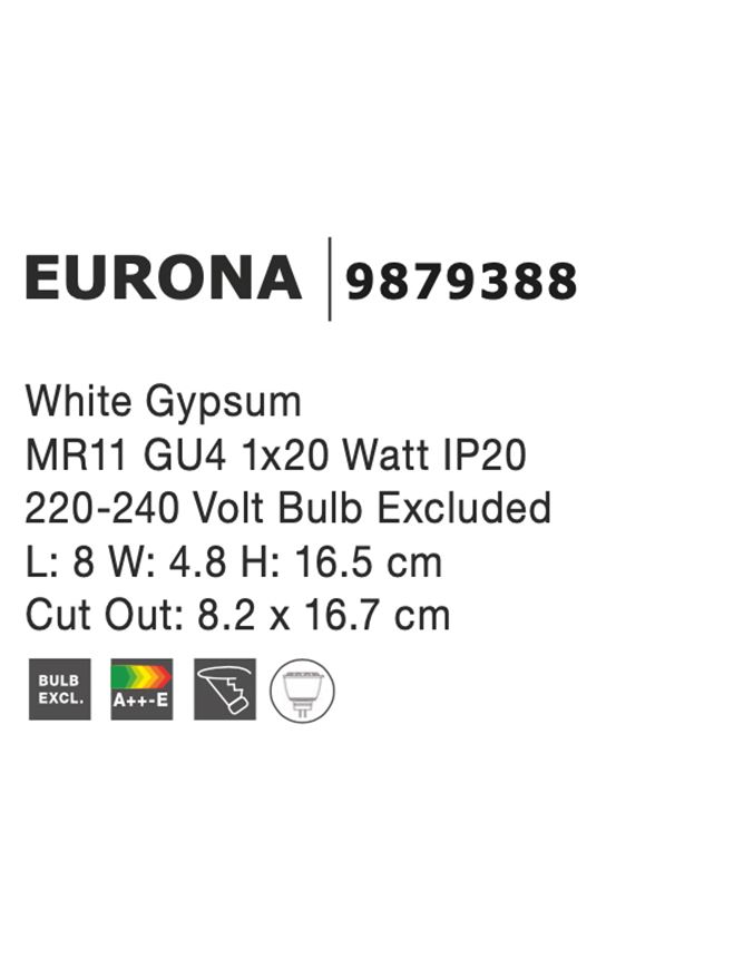White Gypsum MR11 GU4 1×20 Watt IP20 220-240 Volt Bulb Excluded L: 8 W: 4.8 H: 16.5 cm Cut Out: 8.2 x 16.7 cm