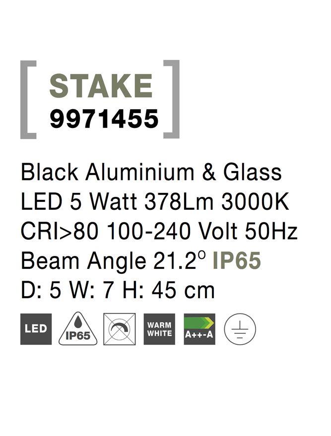 Срок на доставка: ПО ЗАПИТВАНЕ Продуктова информация Материал: Black Aluminium & Glass Тип крушка: LED 5 Watt 378Lm 3000K CRI>80 100-240 Volt 50Hz Beam Angle 21.2° IP65 Код: 9971455 Тип продукт: OUTDOOR – SPIKES Размери: D: 5 W: 7 H: 45 cm