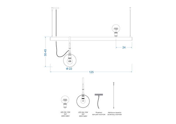 Unit Light 125-B е модел с елегантна тръбна основа златно и черно в комбинация от висящо осветително тяло и ретро фасунга.