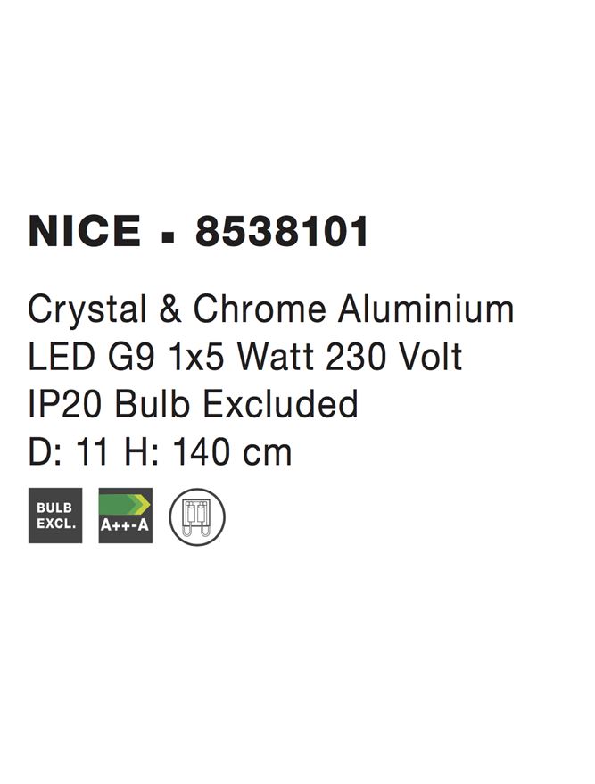 Пендел 8538101 e осветително тяло в съвременен стил, което е подходящо за всекидневна / хол, спалня, кухня, трапезария, коридор, антре, офис. Осветителното тяло е с високо европейско качество, гарантирано от nova-luce (гърция) – една от най-добрите компании в европа в производството на осветителни тела.