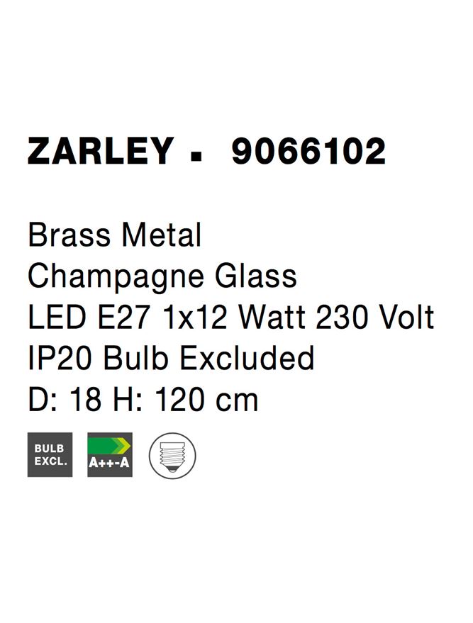 Срок на доставка: ПО ЗАПИТВАНЕ Продуктова информация Материал: Brass Metal Champagne Glass Тип крушка: LED E27 1x12W 230V IP20 Bulb Excluded Код: 9066102 Тип продукт: VINTAGE Размери: D: 18 H: 120 cm