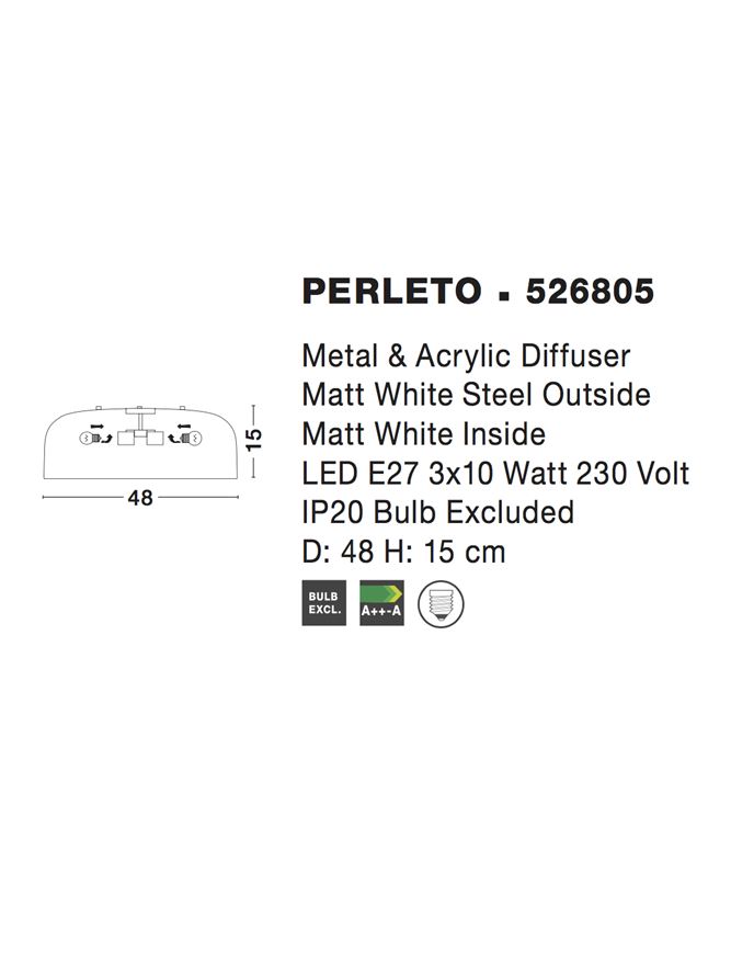 Плафон 526805 e осветително тяло в съвременен, дизайнерски стил, което е подходящо за всекидневна / хол, спалня, кухня, трапезария, коридор, антре, стълбище, офис и други помещения в дома. Осветителното тяло е с гарантирано европейско качество, произведено от утвърдена фирма в производството на осветителни тела, като nova-luce (гърция).