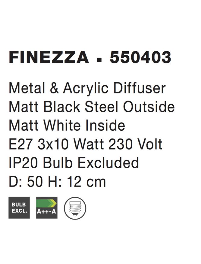 Плафон 550403 e осветително тяло в съвременен стил, което е подходящо за всекидневна / хол, спалня, кухня, трапезария, коридор, антре, стълбище, офис и други помещения в дома. Осветителното тяло е с гарантирано европейско качество, произведено от утвърдена фирма в производството на осветителни тела, като nova-luce (гърция).