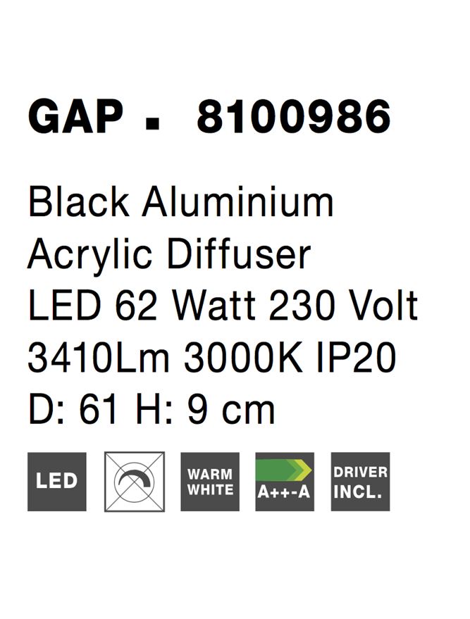 Лед плафон 8100986 e осветително тяло в съвременен, дизайнерски стил, което е подходящо за всекидневна / хол, спалня, кухня, трапезария, коридор, антре, стълбище, офис. Тази led лампа е с европейско качество гарантирано от nova-luce (гърция)- компания с традиции в изработката на лед осветителни тела