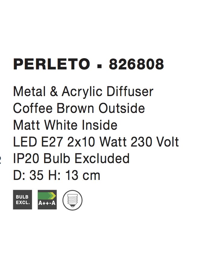 Плафон 826808 e осветително тяло в съвременен, дизайнерски стил, което е подходящо за всекидневна / хол, спалня, кухня, трапезария, коридор, антре, стълбище, офис и други помещения в дома. Осветителното тяло е с гарантирано европейско качество, произведено от утвърдена фирма в производството на осветителни тела, като nova-luce (гърция).