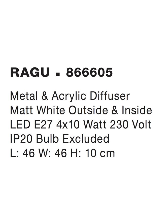 Плафон 866605 e осветително тяло в съвременен стил, което е подходящо за всекидневна / хол, спалня, детска стая, кухня, трапезария, коридор, антре, стълбище, офис и други помещения в дома. Осветителното тяло е с гарантирано европейско качество, произведено от утвърдена фирма в производството на осветителни тела, като nova-luce (гърция).