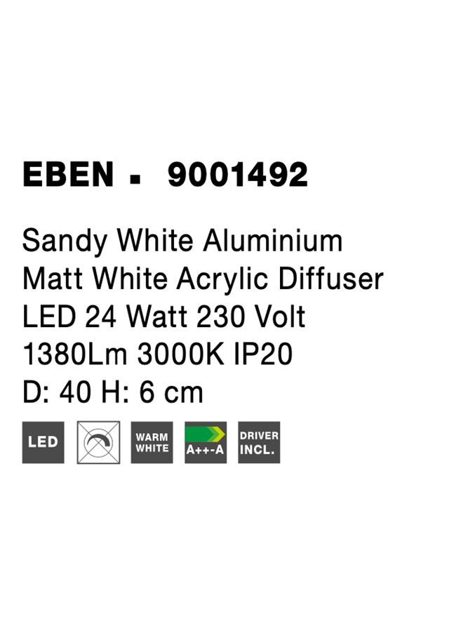 Лед плафон 9001492 e осветително тяло в съвременен стил, което е подходящо за всекидневна / хол, спалня, кухня, трапезария, коридор, антре, стълбище, офис. Тази led лампа е с европейско качество гарантирано от nova-luce (гърция)- компания с традиции в изработката на лед осветителни тела