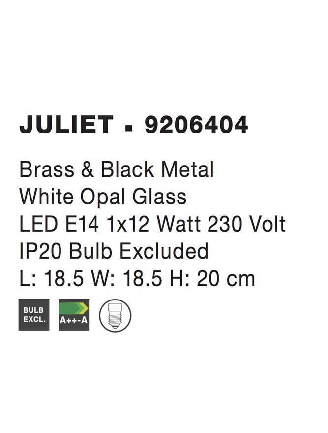 Срок на доставка: ПО ЗАПИТВАНЕ Продуктова информация Материал: Brass & Black Metal White Opal Glass Тип крушка: LED E14 1×12 Watt 230 Volt IP20 Bulb Excluded Код: 9206404 Тип продукт: NOUVELLE Размери: L: 18.5 W: 18.5 H: 20 cm