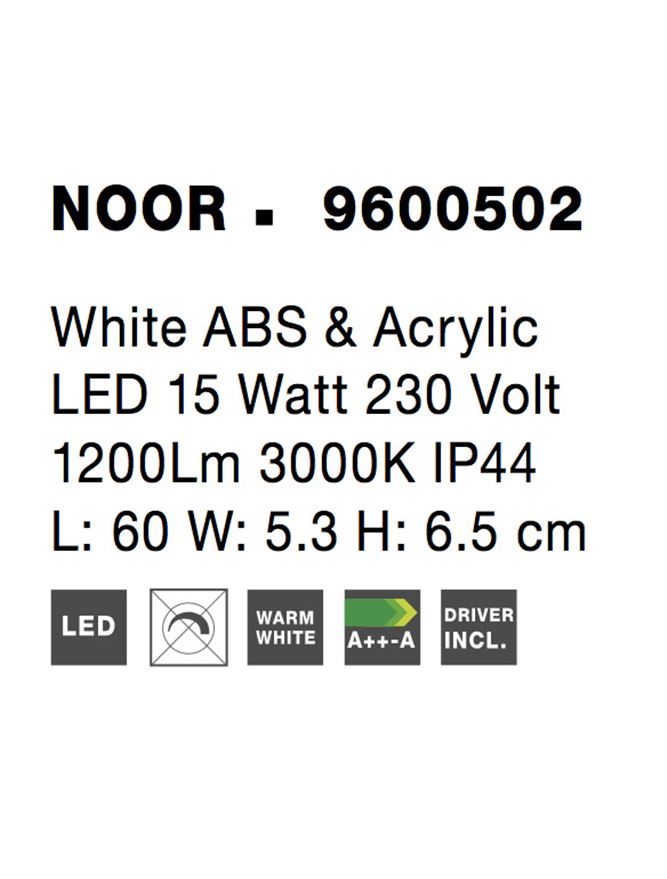 Срок на доставка: ПО ЗАПИТВАНЕ Продуктова информация Материал: White ABS & Acrylic Тип крушка: LED 15W 230V 1200Lm 3000K IP44 Код: 9600502 Тип продукт: BATHROOM Размери: L: 60 W: 5.3 H: 6.5 cm