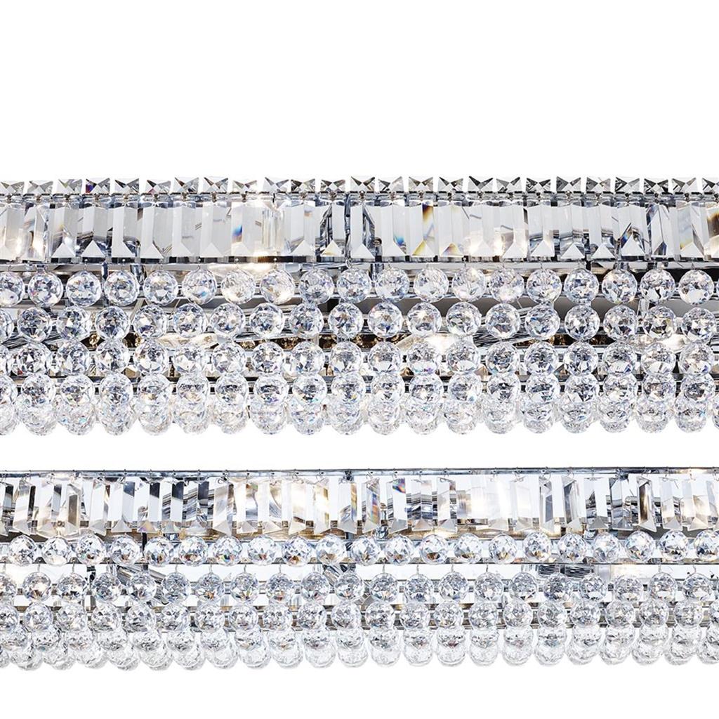 Срок на доставка: ПО ЗАПИТВАНЕ Спецификации: Височина максимална (mm) 1100 Височина (mm) 170 Широчина (mm) 620 Дължина (mm) 1200 Фасунга: E14 Lamp 1 wattage (w) HALOGEN 60W Lamp 1 colour temp (k) NA Dimmable Yes Material Mild Steel and Crystal Lamp Included No Стандартна гаранция от производитела – 1 година