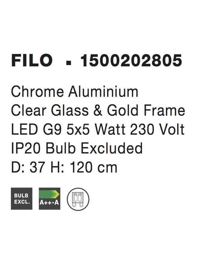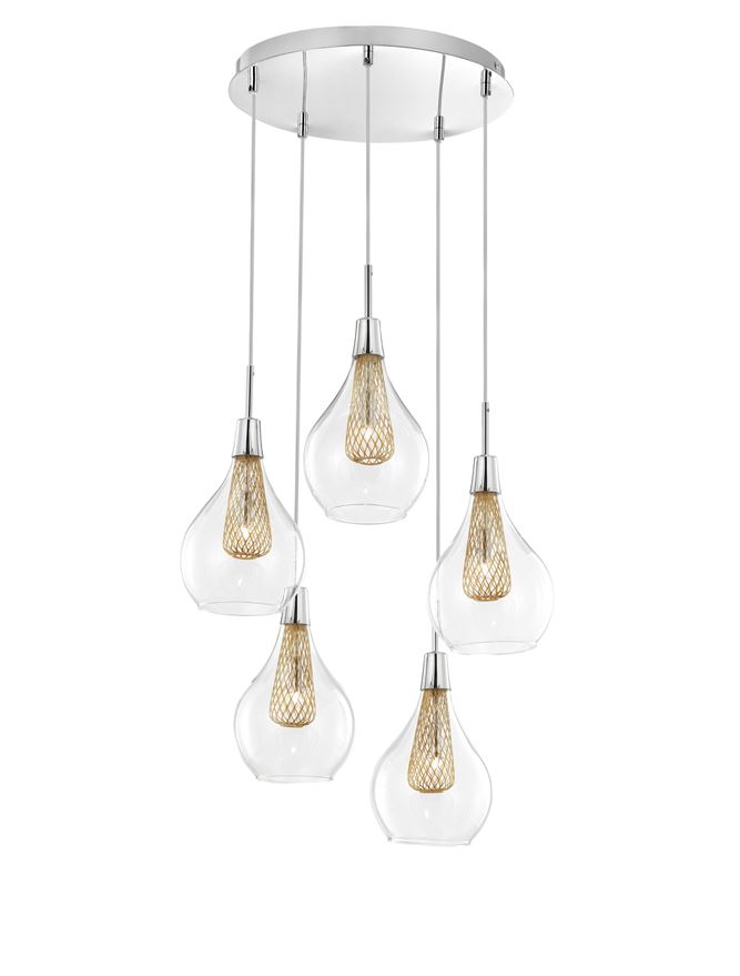 Срок на доставка: ПО ЗАПИТВАНЕ Продуктова информация Материал: Chrome Aluminium Clear Glass & Gold Frame Тип крушка: LED G9 5x5W IP20 Bulb Included Код: 1500202805 Тип продукт: DROPS Размери: D: 37 H: 120 cm