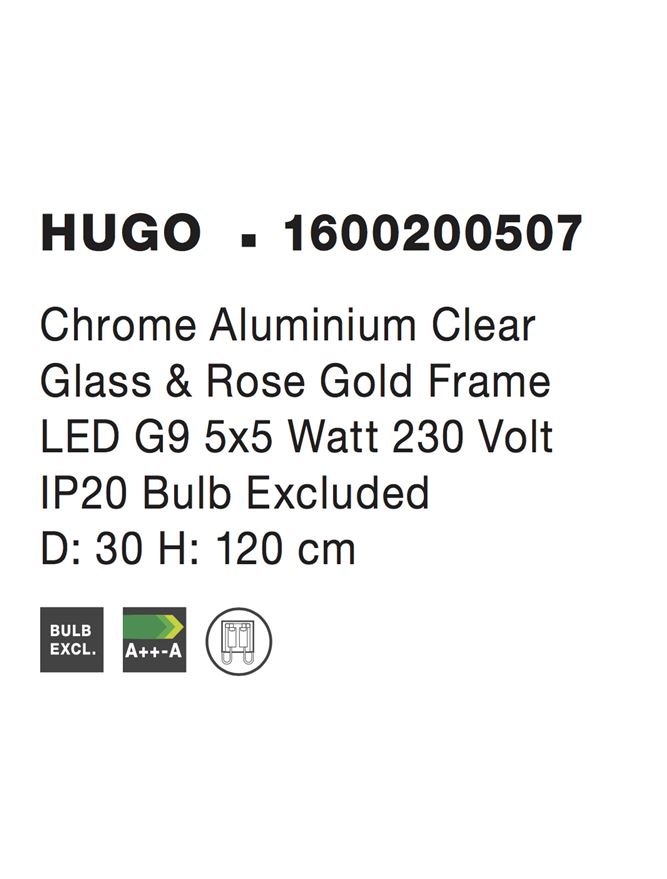 Срок на доставка: ПО ЗАПИТВАНЕ Продуктова информация Материал: Chrome Aluminium Clear Glass & Rose Gold Frame Тип крушка: LED G9 5×5 Watt 230 Volt IP20 Bulb Excluded Код: 1600200507 Тип продукт: DROPS Размери: D: 30 H: 120