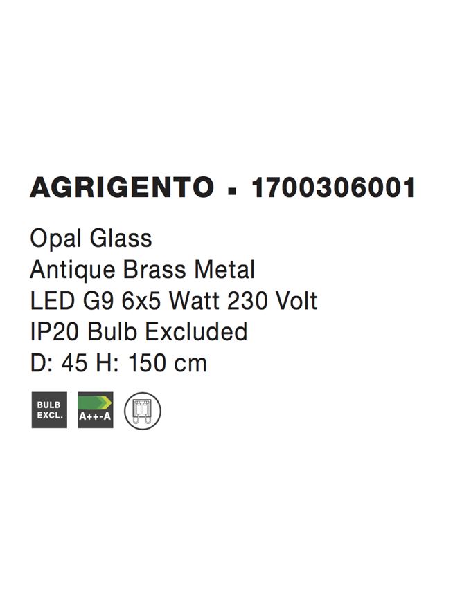 Срок на доставка: ПО ЗАПИТВАНЕ Продуктова информация Материал: Opal Glass & Antique Brush Metal Тип крушка: LED G9 6×5 Watt 230 Volt IP20 Код: 1700306001 Тип продукт: NOUVELLE Размери: D: 45 H: 150 cm