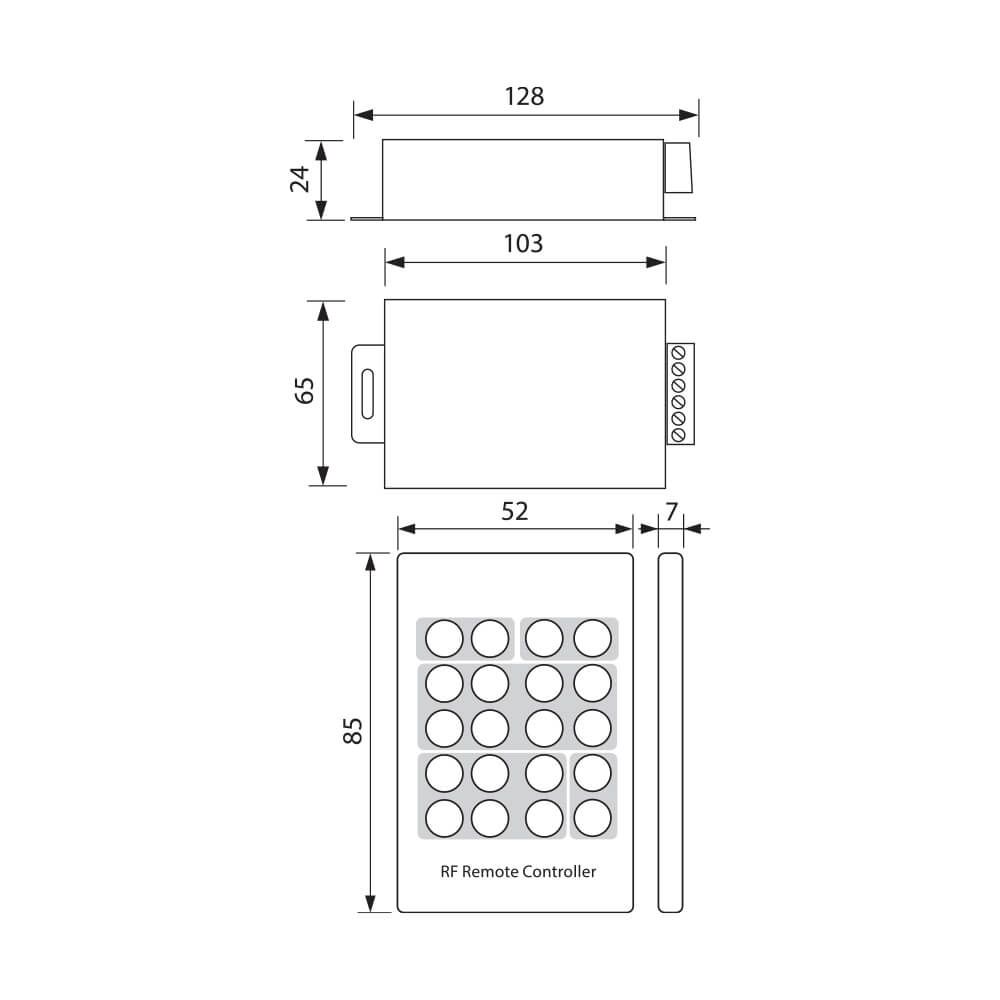 Декларация СерияCONTROLLER Напрежение (V)12V Степен на защитаIP20 Размери (mm)65x103x24mm Max натоварване144W/288W Гаранция24 месеца гаранция Материалметал