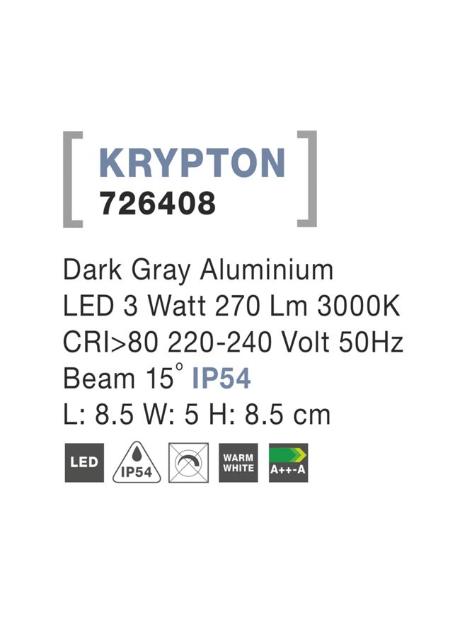 Лед външна лампа 726408 e осветително тяло в съвременен стил, което е подходящо за външно осветление, фасадно осветление. Тази led лампа е с европейско качество гарантирано от nova-luce (гърция)- компания с традиции в изработката на лед осветителни тела