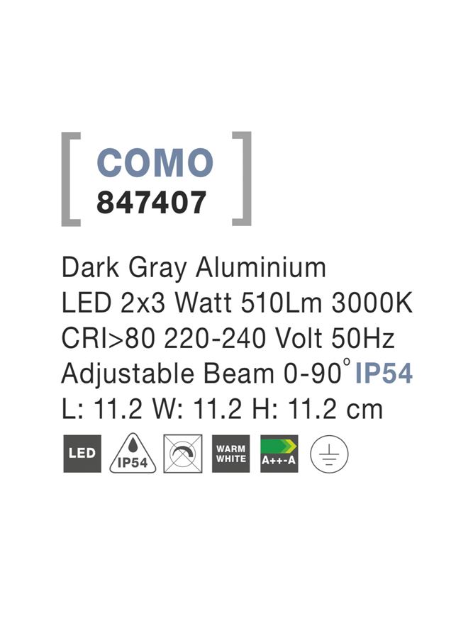 Лед външна лампа 847407 e осветително тяло в съвременен стил, което е подходящо за външно осветление, фасадно осветление. Тази led лампа е с европейско качество гарантирано от nova-luce (гърция)- компания с традиции в изработката на лед осветителни тела