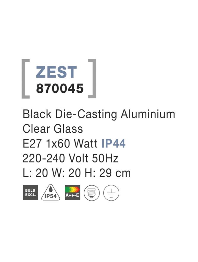 Външна лампа 870045 e осветително тяло в съвременен стил, което е подходящо за градинско осветление, външно осветление. Осветителното тяло е с високо европейско качество, гарантирано от nova-luce (гърция) – утвърдена компания в европа за производството на осветителни тела.