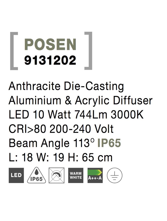 Лед външна лампа 9131202 e осветително тяло в съвременен стил, което е подходящо за градинско осветление, външно осветление. Тази led лампа е с европейско качество гарантирано от nova-luce (гърция)- компания с традиции в изработката на лед осветителни тела