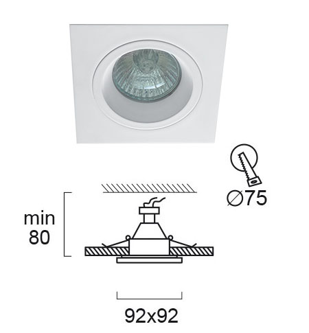 * Описание: Вграден монтаж Спот Бял Square 92X92 Richard