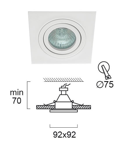 * Описание: Вграден монтаж Спот Бял Square Adj 92X92 Richard