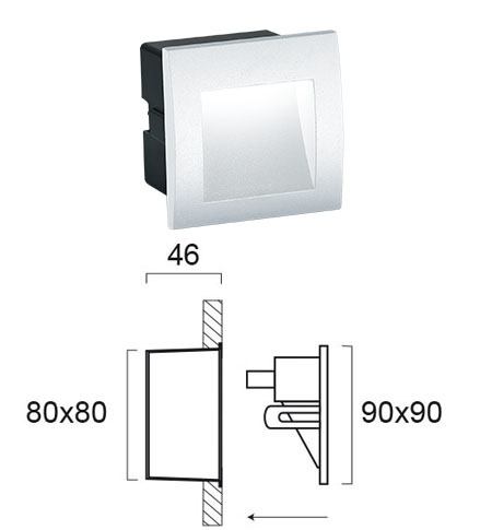 * Описание: Вграден монтаж Стенна лампа 90X90 Riva
