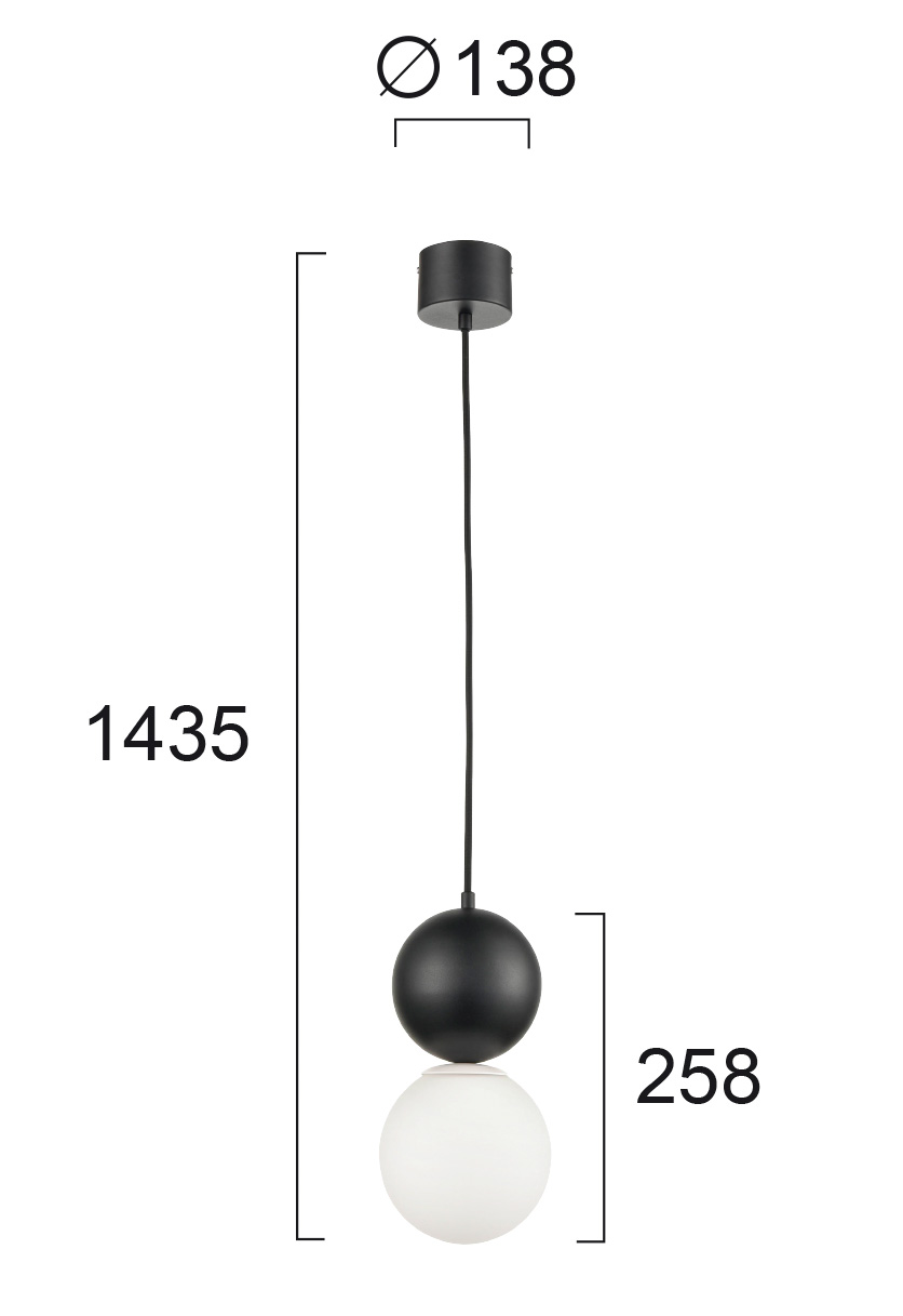 * Размери: D: 138 X H:1435, h(balls): 258