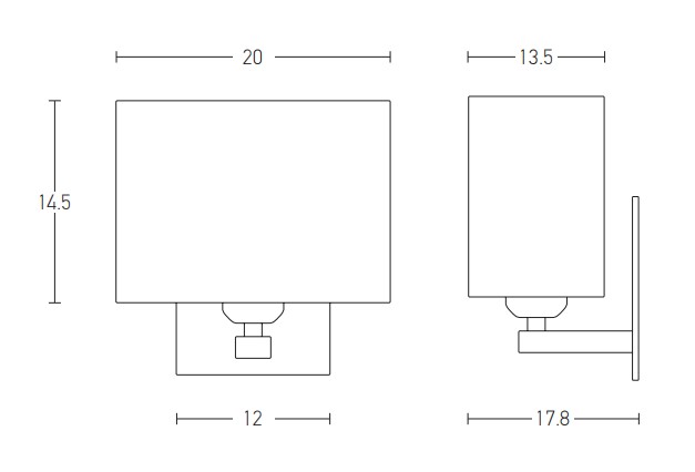 | Широчина: | Base: 12 cm L17,8 cm, Shade: 13,5×20 cm |