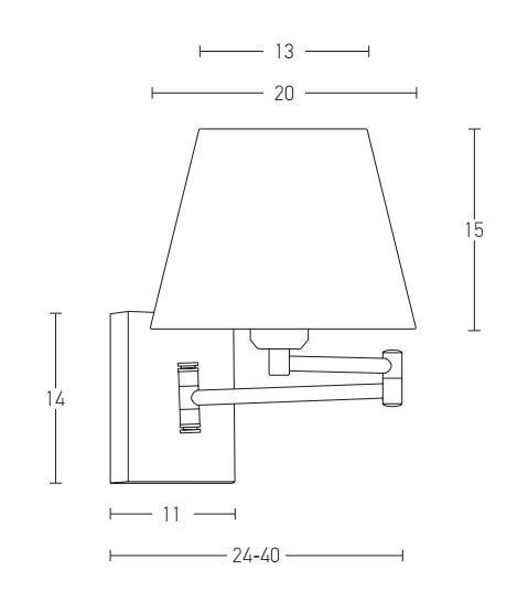 | Широчина: | Base: 11 cm L24-40 cm Shade: 20×13 cm |